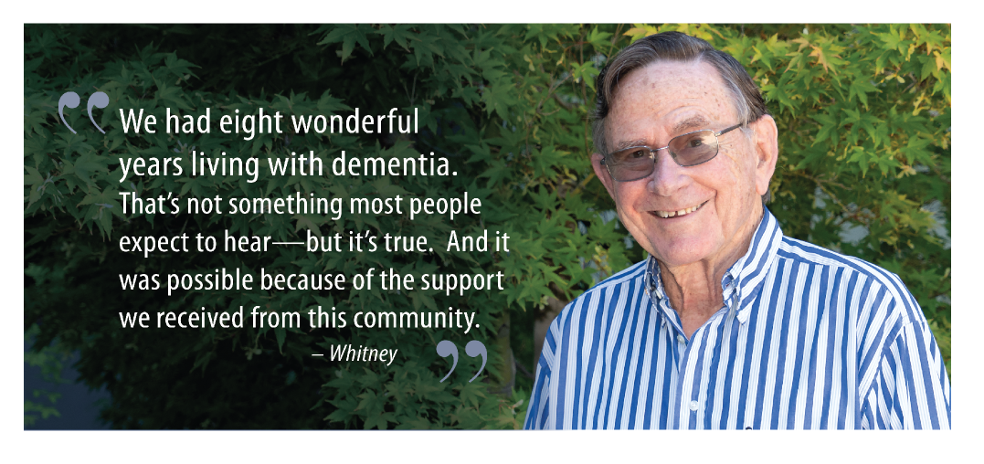 Following his wife’s dementia diagnosis, Whitney became a strong advocate for improving dementia support in our community. Today, he is working with Sonoma Valley Hospital to help launch programs that will provide guidance and support for other families navigating this journey. Click here to read Whitney’s story.
